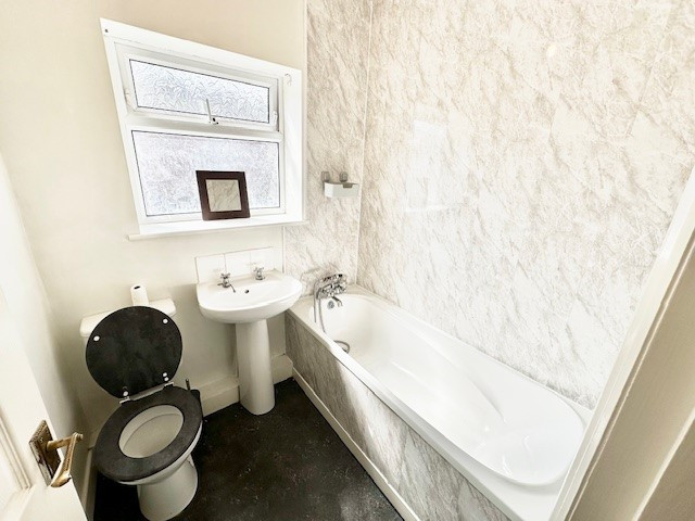Taking the stairs to the first floor you are met by two bedrooms both of which are carpeted and which have double glazed windows and central heating radiators. The three piece bathroom suite comprises WC, sink and bath.